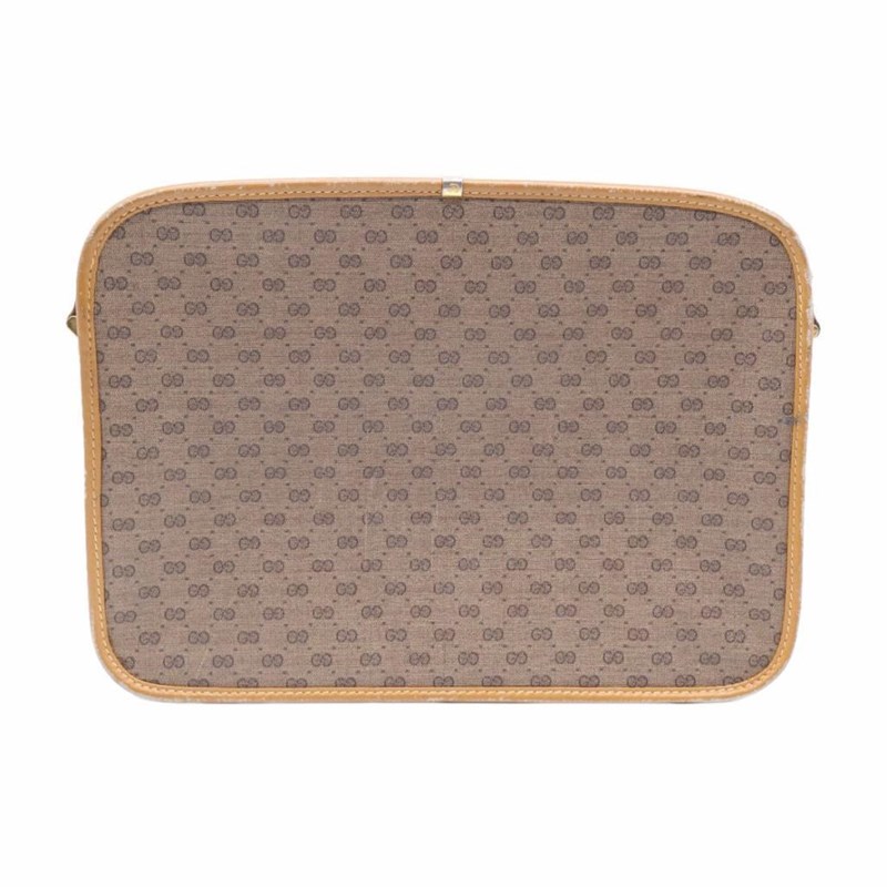 GUCCI VINTAGE MICRO GG CROSSBODY BAG Length: 28cm Height: 20cm Depth: 7cm Strap Drop: 49cm Adjustable Exterior Material Canvas and leather trim with gold-tone hardware, a front patch pocket, top zip closure and a shoulder strap. Interior Material Leather lining with a main compartment and a zipped pocket. Additional Condition Report - Visible sign of wear and tears on exterior and leather trim - Visible scuffs and creases on exterior corners - Moderate wear in interior - Sign of wear and scratches on hardware Comes With - Certificate of Authenticity CROSS DOCKED 162802+28