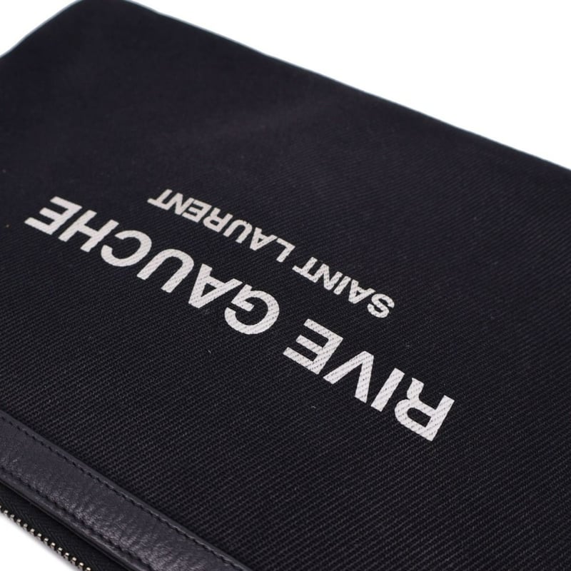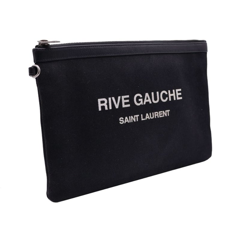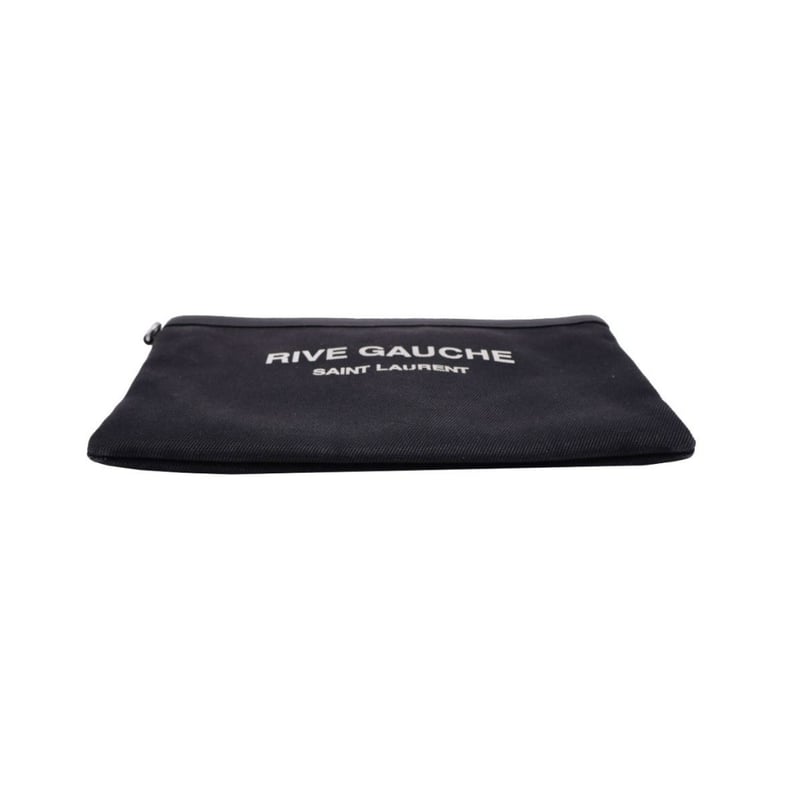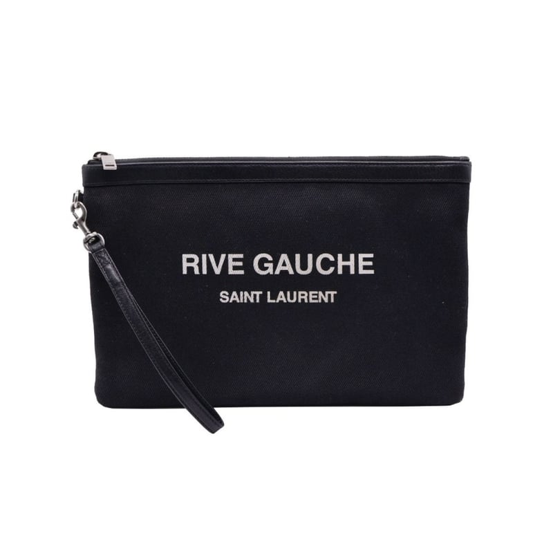 SAINT LAURENT BLACK CANVAS RIVE GAUCHE POUCHItem Size: Height: 20cm, Width: 30cm, Depth: 2cmExterior MaterialCanvas With Silver-Tone Hardware, Top Zip Closure And A Wristlet Strap.Interior MaterialTextile Lining With A Main Compartment And A Patch Pocket.Wristlet Strap Drop: 12Cm DetachableAdditional Condition Report- Minor Sign Of Wear And Tears On Exterior- Minor Creases On Exterior Corners- Minor Wear In Interior- Sign Of Wear And Scratches On HardwareComes With- Original Dustbag- A Detachable Wristlet Strap- Care Book- Certificate Of AuthenticityCondition: Good - Refer To ImagesCROSSDOCK162909+14