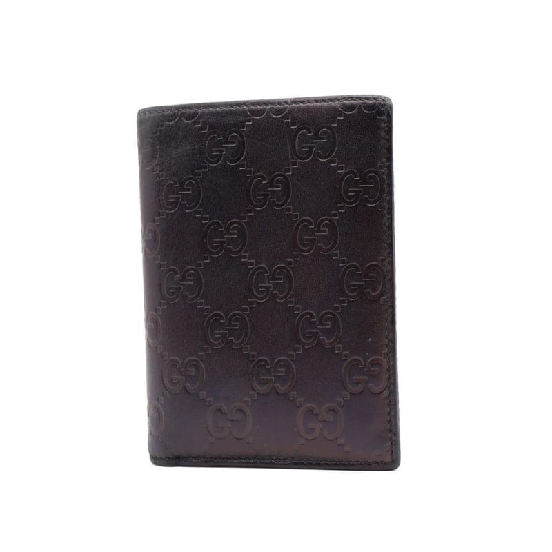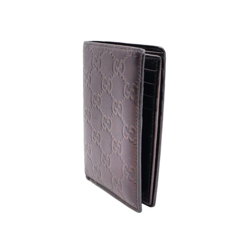 GUCCI DARK BROWN GUCCISSIMA LEATHER WALLET This wallets interior is in leather with the monogram on the leather exterior. Length: 9.5cm Height: 13cm Depth: 1.5cm Exterior Material Leather. Interior Material Leather lining with a bill compartment, 7 flat pockets and 12 card slots. Additional Condition Report - Moderate sign of wear and tears on exterior - Minor scuffs along the edges - Moderate wear in interior Comes With - Certificate of Authenticity 162870+26 CROSSDOCK