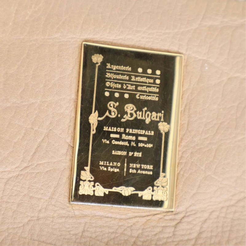 BVLGARI LEATHER TOP HANDLE BAG Length: 38cm Height: 30cm Depth: 20cm Handle Drop: 17cm Exterior Material Leather with gold-tone hardware, three front flap pockets, top zip closure and dual top handles. Interior Material Leather lining with a main compartment and a zipped pocket. Additional Condition Report - Moderate sign of wear and tears on exterior - Moderate scuffs on exterior corners - Minor wear and visible tears in interior - Sign of wear and scratches on hardware Comes With - Certificate of Authenticity CROSS DOCKED 162802+11