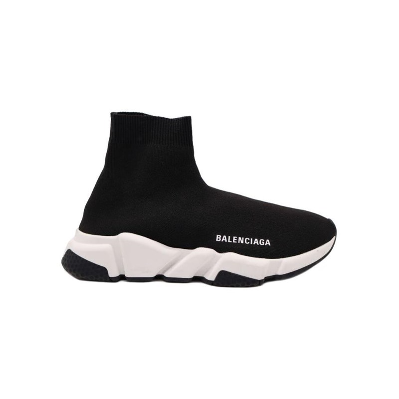 BALENCIAGA BLACK KNIT FABRIC SPEED TRAINER SOCK HIGH TOP SNEAKERS SIZE 39 Size: 39 Material Knit fabric with rubber soles. Additional Condition Report - Moderate sign of wear and tears on exterior - Moderate scuffs on soles Comes With - Original Box - Certificate of Authenticity CROSS DOCKED 162802+12