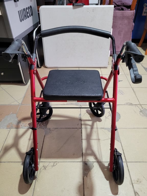 Four-Wheel Rollator Walker With A Seat, Foldable, Red & Black FinishDimensions H:82cm W:50cm D:75cm