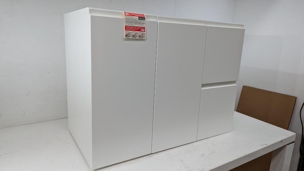 900mm Finger Pull Edge Cabinet, Firenza, Model: 90ZR, Wall Hung, 2 × Drawers On Right, Shelf, Colour Matt White, Dimensions 65cm(H)×88cm(W)×46cm(D)