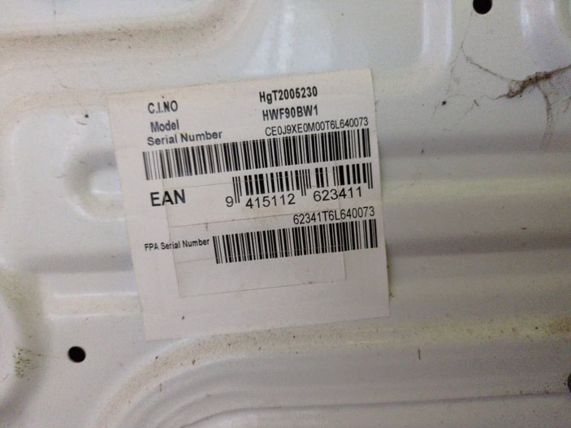 Haier Inverter Motor Washing Machine. Model HWF90BW1. Serial NO. CE0J9XE0M00T6L640073.