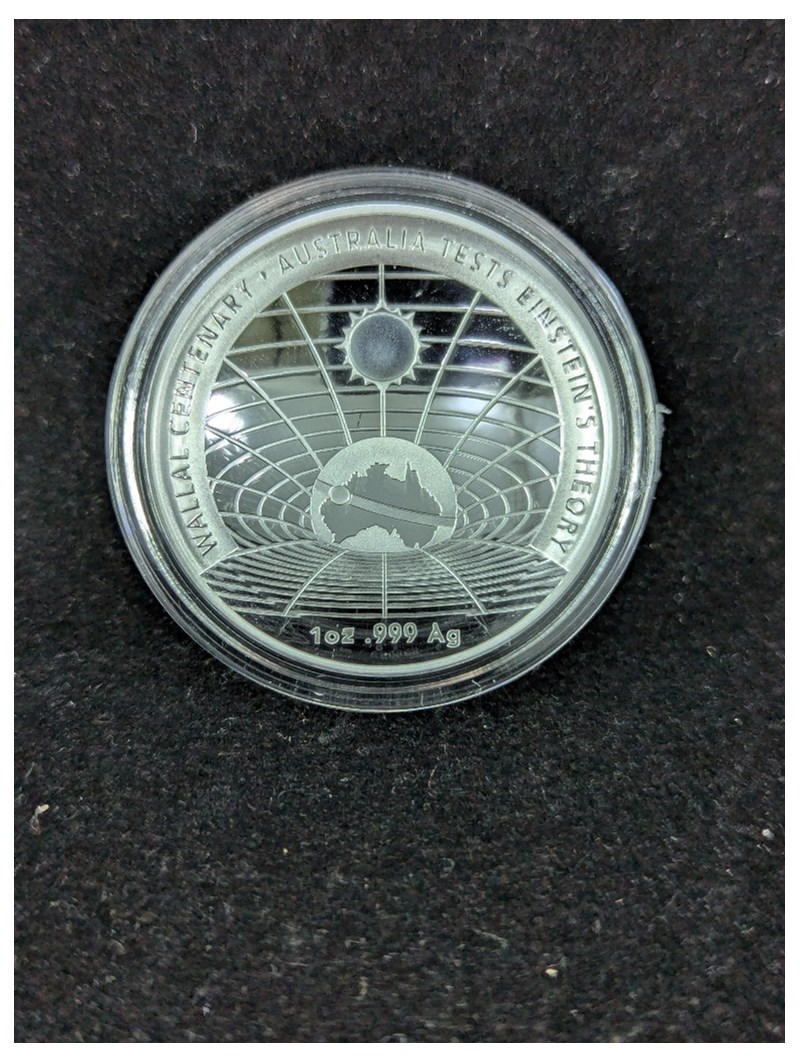 ROYAL AUSTRALIAN MINT 2022 WALLAL CENTENARY TESTS EINSTEIN'S THEORY SPECIAL 1OZ DOMED SILVER COIN.