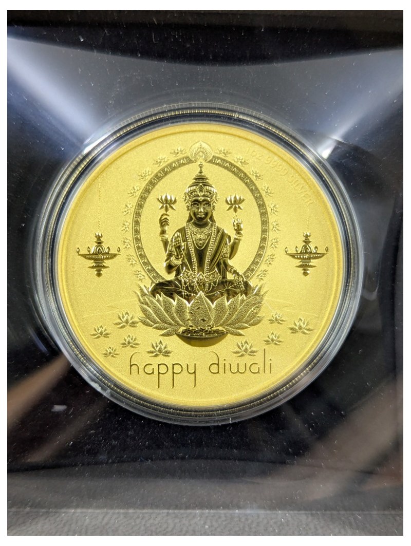 AUSTRALIAN THE PERTH MINT HAPPY DIWALI 1OZ SILVER GOLD PLATED COIN/MEDALLION'S.