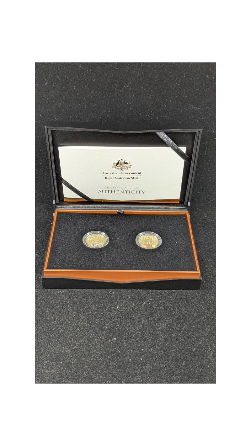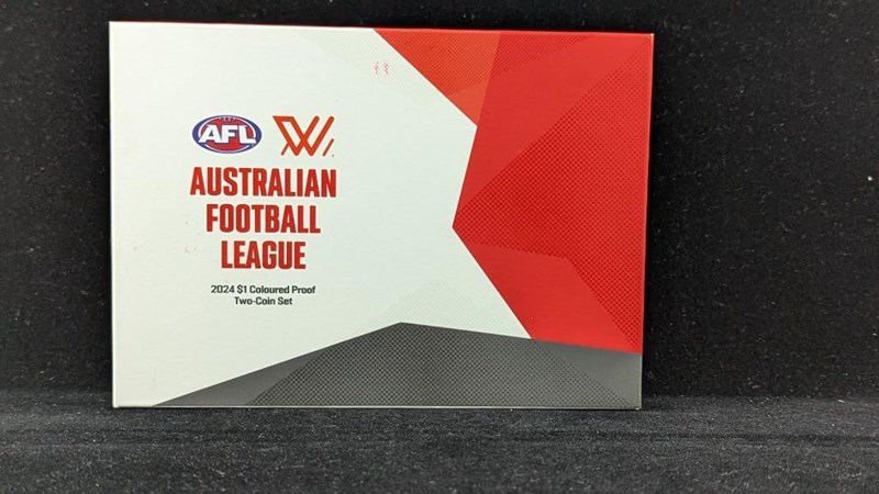 ROYAL AUSTRALIAN MINT 2024 AFL FOOTBALL LEAGUE TWO $1 COLORED COIN SET. Condition: Proof 151167+5