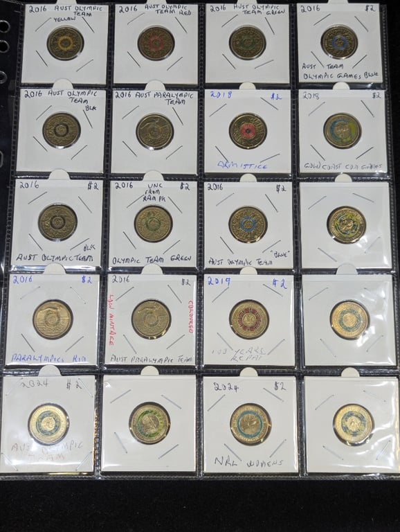 TWENTY AUSTRALIAN TWO DOLLAR COINSCoins Include: 2016 Australian Olympic Team, 2018 Armistice, 2018 Commonwealth Games, 2019 100 Years Repatriation, 2024 Nrl Womens Premiership, EtcConditions Range From Approx: F - Ef584893+27