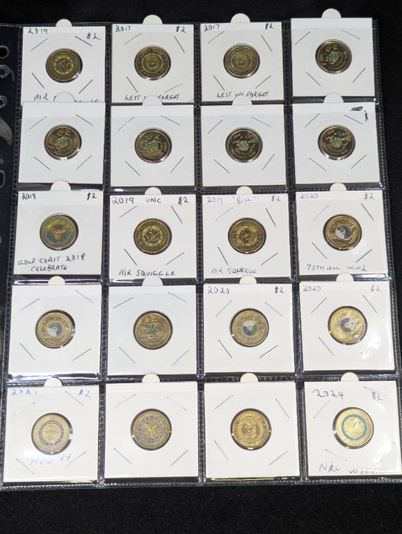 TWENTY AUSTRALIAN TWO DOLLAR COINSCoins Include 2019 Mr Squiggle, 2024 Australian Paralympic Team, 2018 Gold Coast Celebrate, 2020 7Th Anniversary End Of Second World War, 2024 Nrl Womens Premiership, EtcConditions Range From Approx: F - Ef584893+29