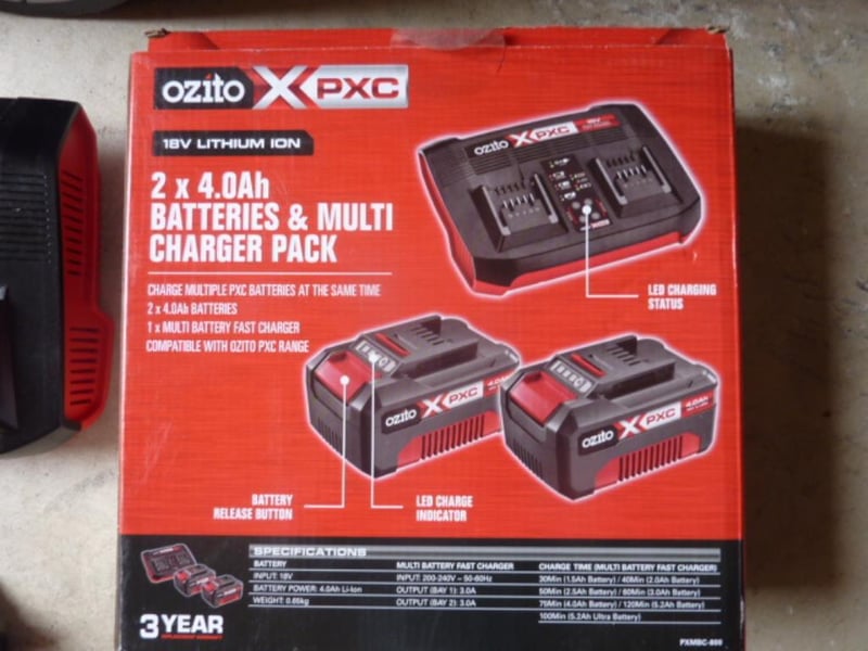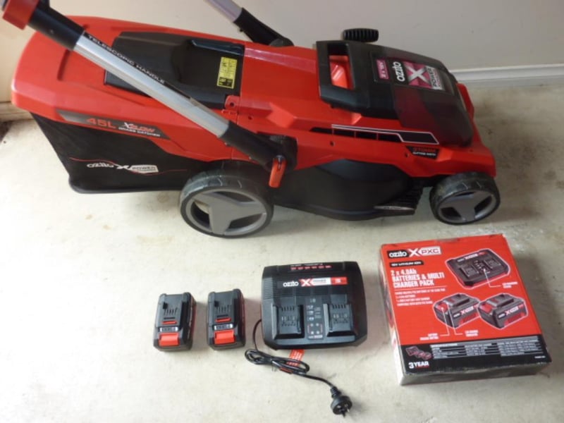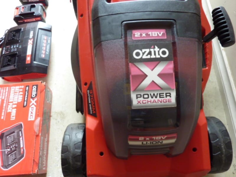 Lawnmower. Ozito cordless 2 x 18 volt. 370MM cut very minimal use. Mower batteries & charger near new. (RRP $399)