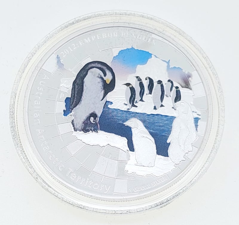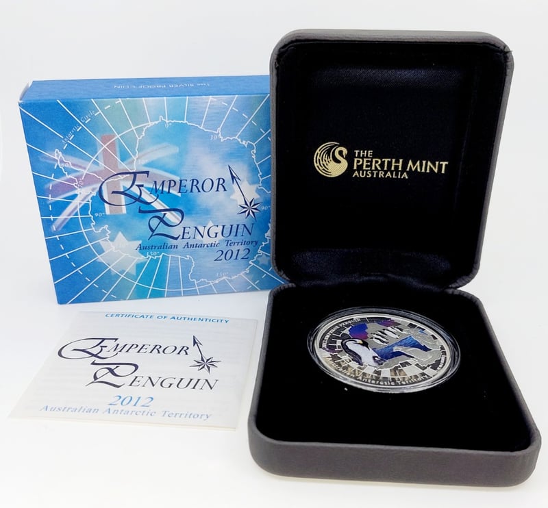 2012 AUSTRALIAN ANTARCTIC TERRITORY EMPEROR PENGUIN 1OZ SILVER PROOF COIN488239+3