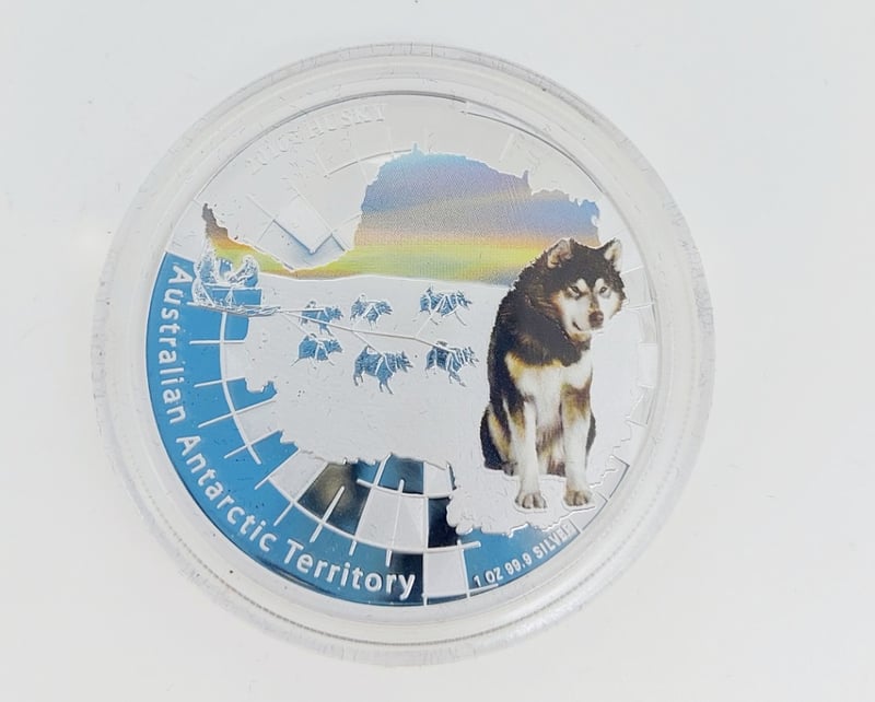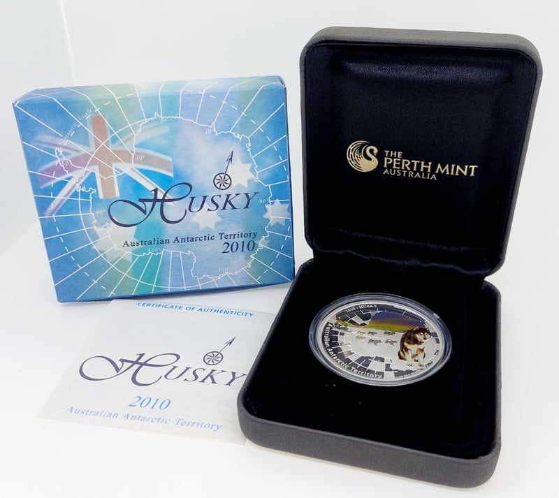 2010 AUSTRALIAN ANTARCTIC TERRITORY HUSKY 10Z SILVER PROOF COIN 488239+8