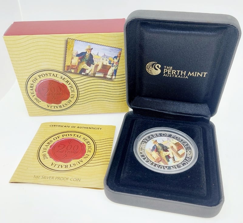 200 YEARS OF POSTAL SERVICE IN AUSTRALIA 1OZ SILVER PROOF COIN488239+12