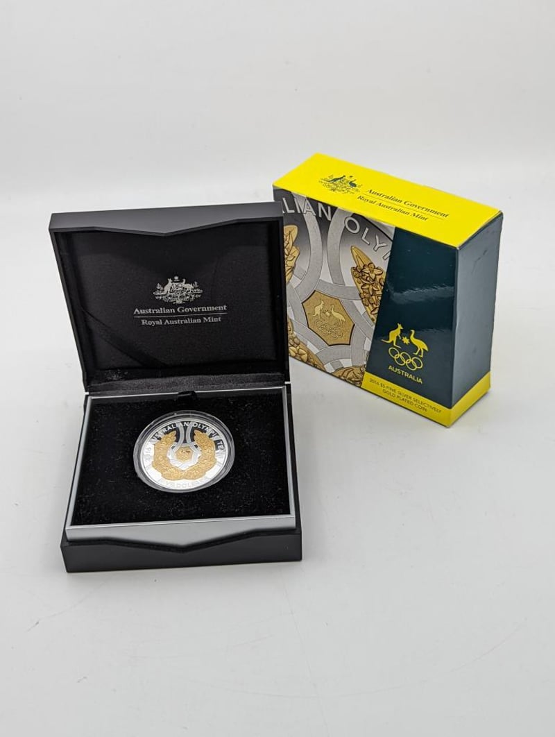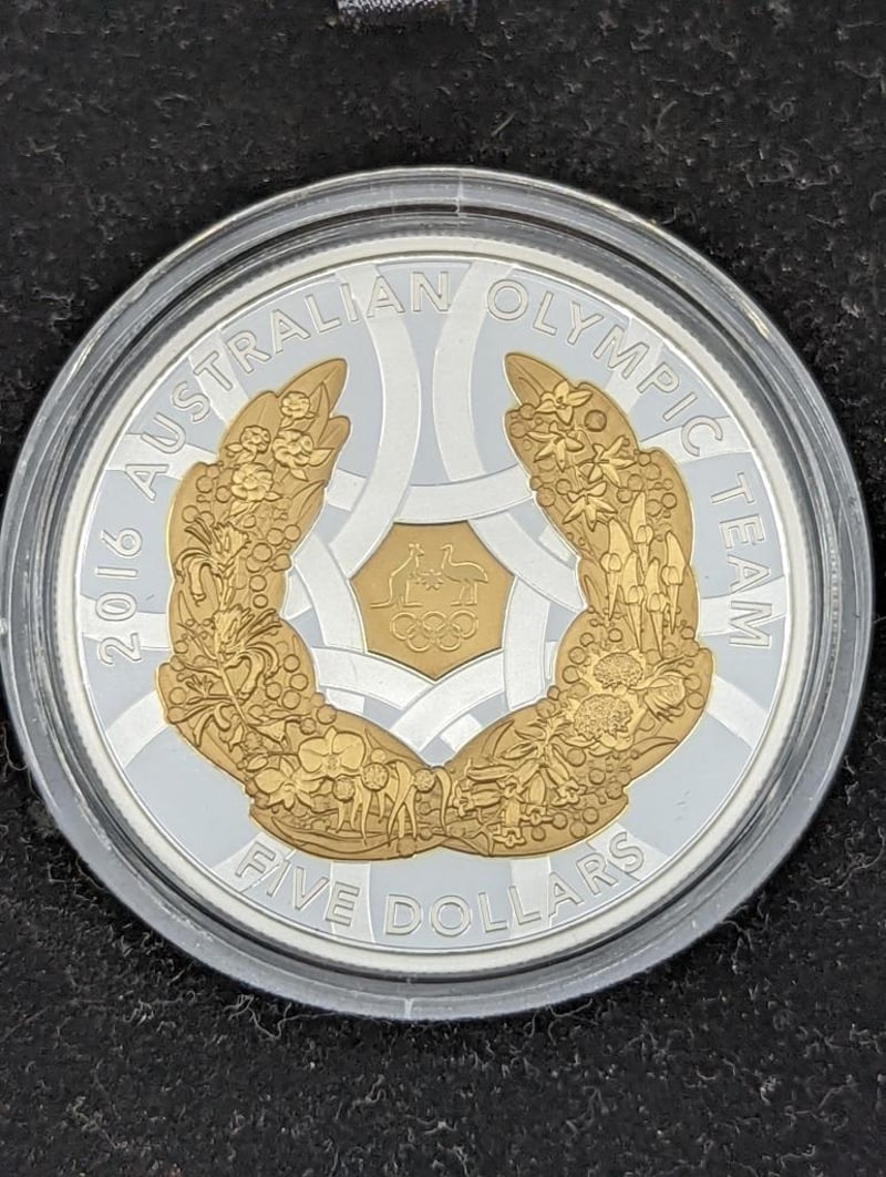 ROYAL AUSTRALIAN MINT 2016 AUSTRALIAN OLYMPIC TEAM 1OZ SILVER SELECTIVELY GOLD PLATED COIN. Condition: Proof235247+18