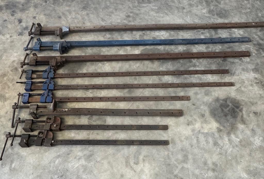 9x Bar Clamps. Various lengths: 1x 1800mm, 2x 1500mm, 2x 1350mm, 1x 1000mm, 3x 800mm