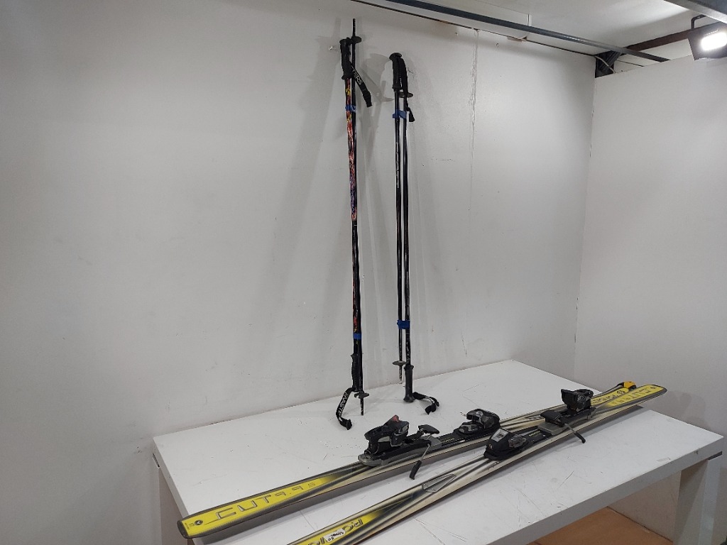 Snow Skis, Rossignol, Cut 9.9s, Salomon Sychro Center Foot Binds, 177, With ×4 Ski Polls, Quantity 3