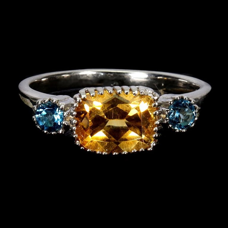NATURAL CITRINE & TOPAZ RING. Natural Citrine & Topaz Ring. Made In Solid Sterling Silver And Plated In14K White Gold. Features Natural Golden Citrine And Natural London Blue Topaz. Ring Size 7 Condition: Good - Refer Images 0488241+22