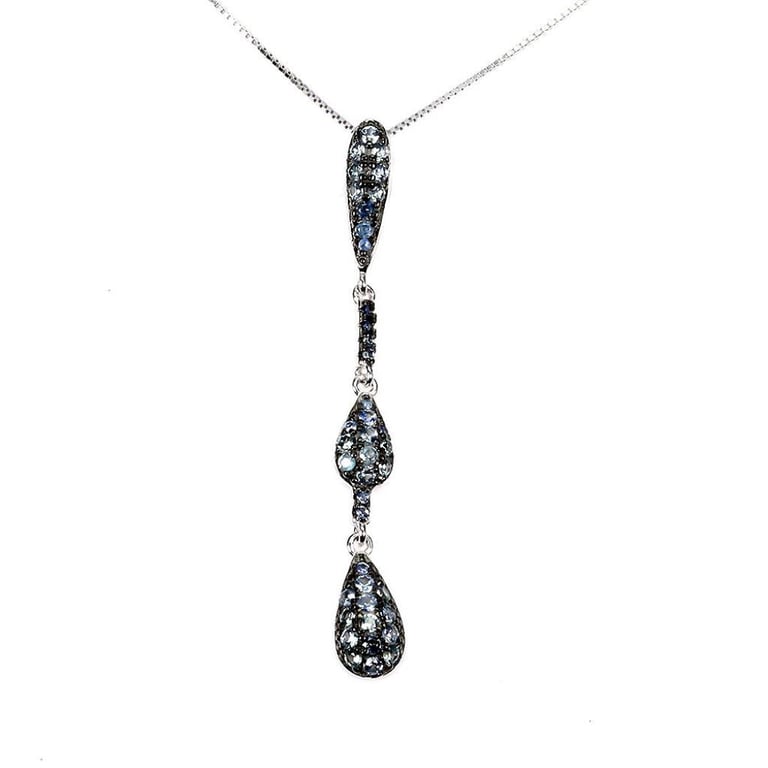 NATURAL DIAMOND CUT BLUE SAPPHIRE DROP PENDANT & CHAIN. Natural Diamond Cut Blue Sapphire Drop Pendant & Chain. Made In Solid Sterling Silver And Plated In`14K White Gold. Chain Measures 18 Inches. Condition: Good - Refer Images 0488241+14