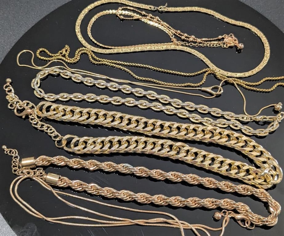 FAUX GOLD NECKLACES & BRACELET, SOLD AS LOT Condition: Good - Refer To Images +12