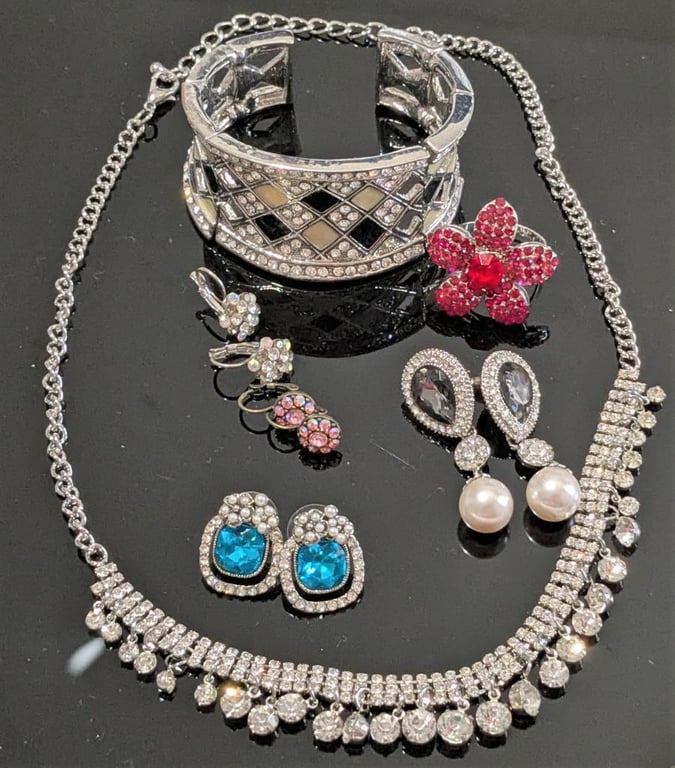 ASSORTED BLING JEWELLERY INCLUDING NECKLACE, EARRINGS, RING & BANGLE, SOLD AS LOT Condition: Good - Refer To Images +16