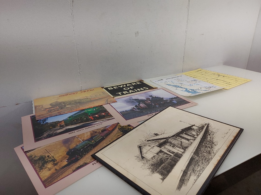 Train Decorative Wall Art, Includes Maps, Posters, Waring Sing, Quantity 5 Sold As Lot