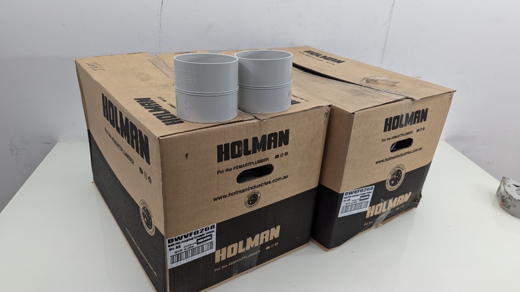 DWV PVC Coupling Straight 100mm, Holman, Model: DWVFO269, Quantity Approximately 90 Sold As Lot