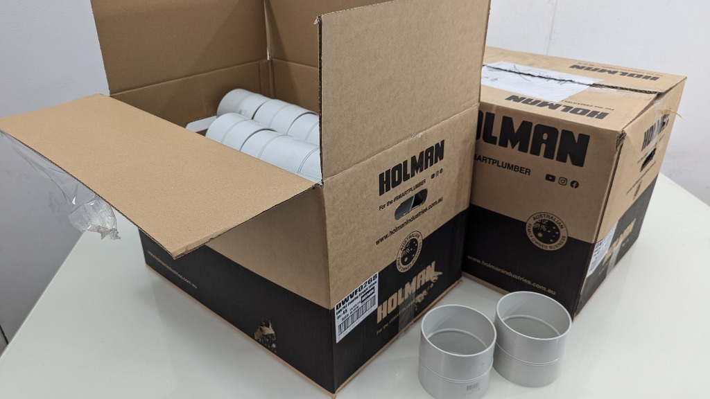 DWV PVC Coupling Straight 100mm, Holman, Model: DWVFO269, Quantity Approximately 90 Sold As Lot