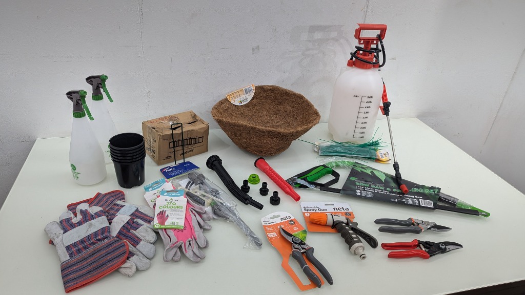 Gardening Package, Includes Bow Saw, Secateurs, Gloves, Hose Connection and More, Quantity Per Lot Sold As Lot