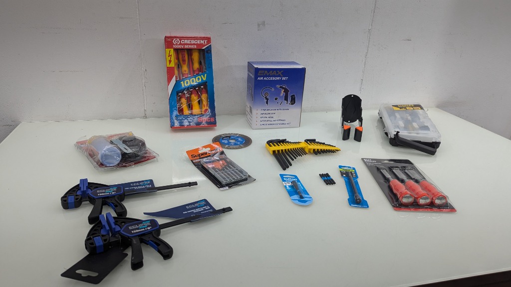 Assorted Tool Lot, Includes Bar Clamps, Air Accessory Kit, Screwdrivers and More, Quantity Per Lot Sold As Lot