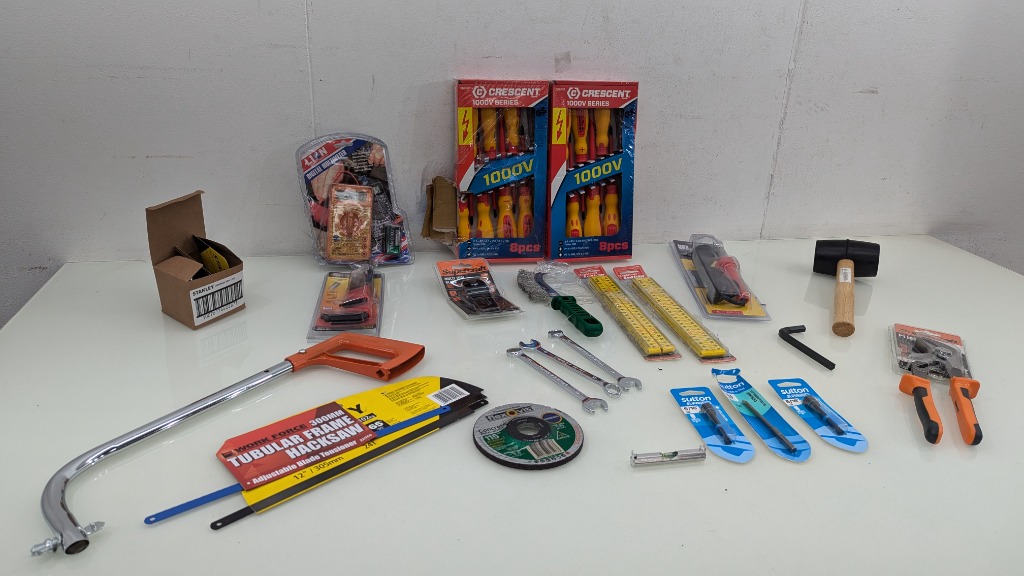 Assorted Tool Bundle, Includes Screwdrivers, Folding Rule, Pliers, Hacksaw and More, Quantity Per Lot Sold As Lot