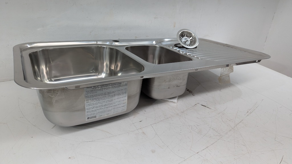 Stainless Steel Laundry Bowl, NuGleam by Everhard, Model: 73103 - 980LH, 1 & 1/2 Bowls and Single Drainer, 1 × Tap Hole, Dimensions 18cm(H)×98cm(W)×48cm(D)
