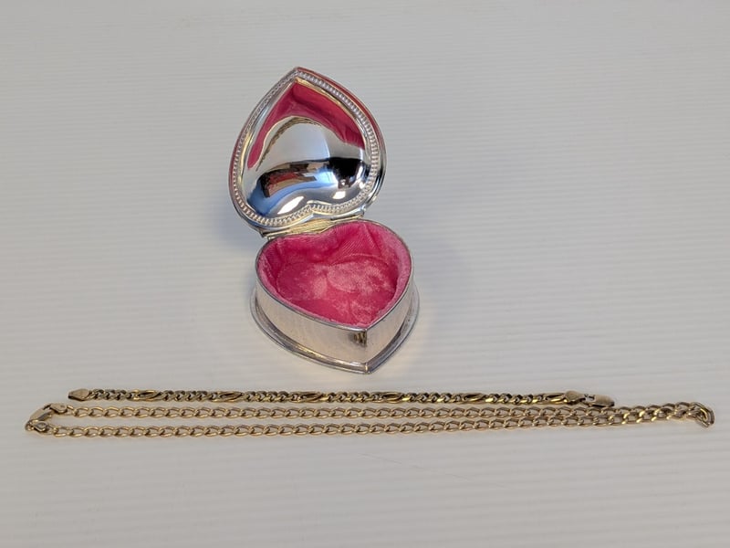 Jewellery, including trinket box, gold style pieces with stamps - refer to images