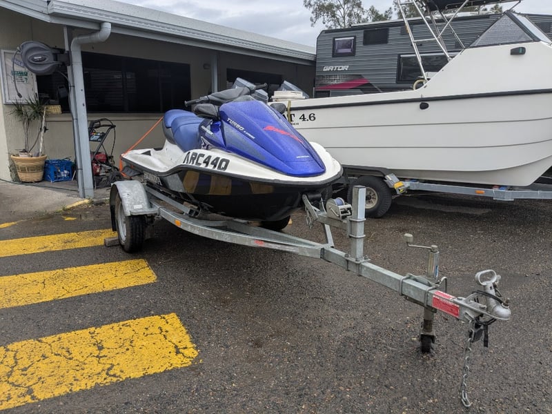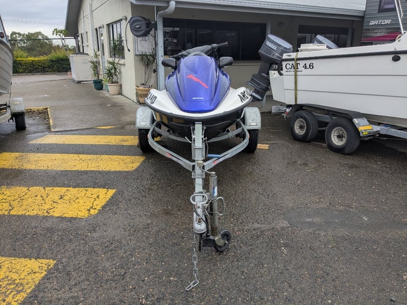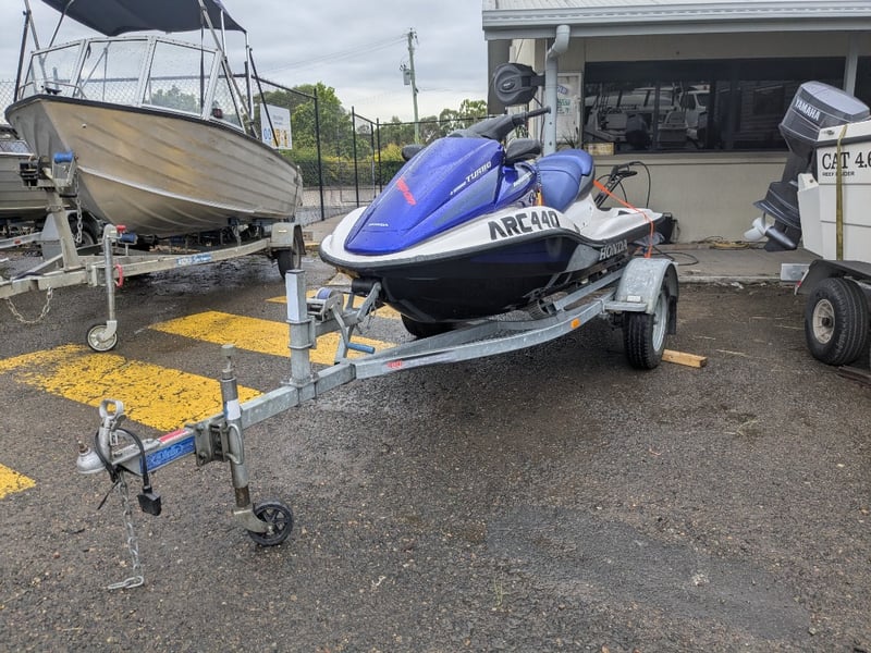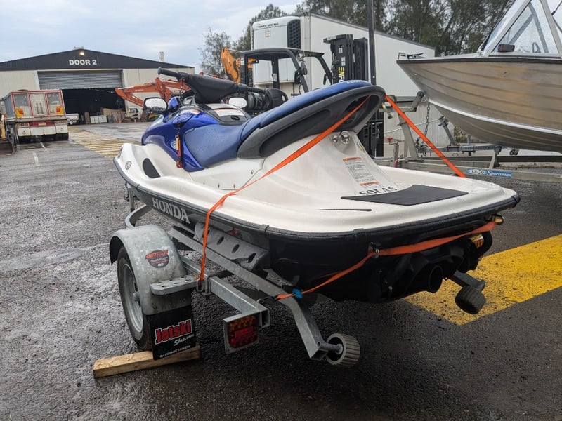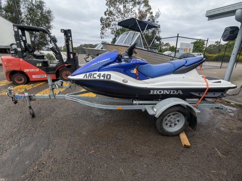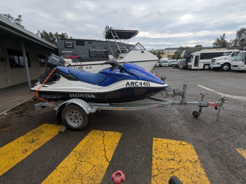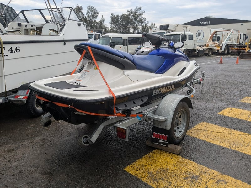 2006 Honda Aquatrax F-12XYear: 2006Make: HondaModel: Aquatrax F-12xHull Material: fibreglass Colour: White/blueEngine: HondaEngine Model: SW01EEngine no: 4004454Engine Hours Indicating: Unknown, Vendor Advises: 90hrsDescription: Pull action lever for reverse, cover for ski, spark plugsNote: Unknow working condition, battery disconnected, spark plugs loose, ignition coils unplugged Total length on trailer: 4.4mTrailer width: 1.45mHIN: USHPSE1035B606Vessel length: 3.1mON A TRAILER:Year: 2016Make: Oceanic TrailersModel: JSKM-5R (Odessi)Configuration: Single AxleSuspension: Leaf suspension Description: Hand winch, VIN: 6HRBTGCTSLG001492ATM: 750KGTare: 140KGTotal length: 4.4m#MMRKey # E35