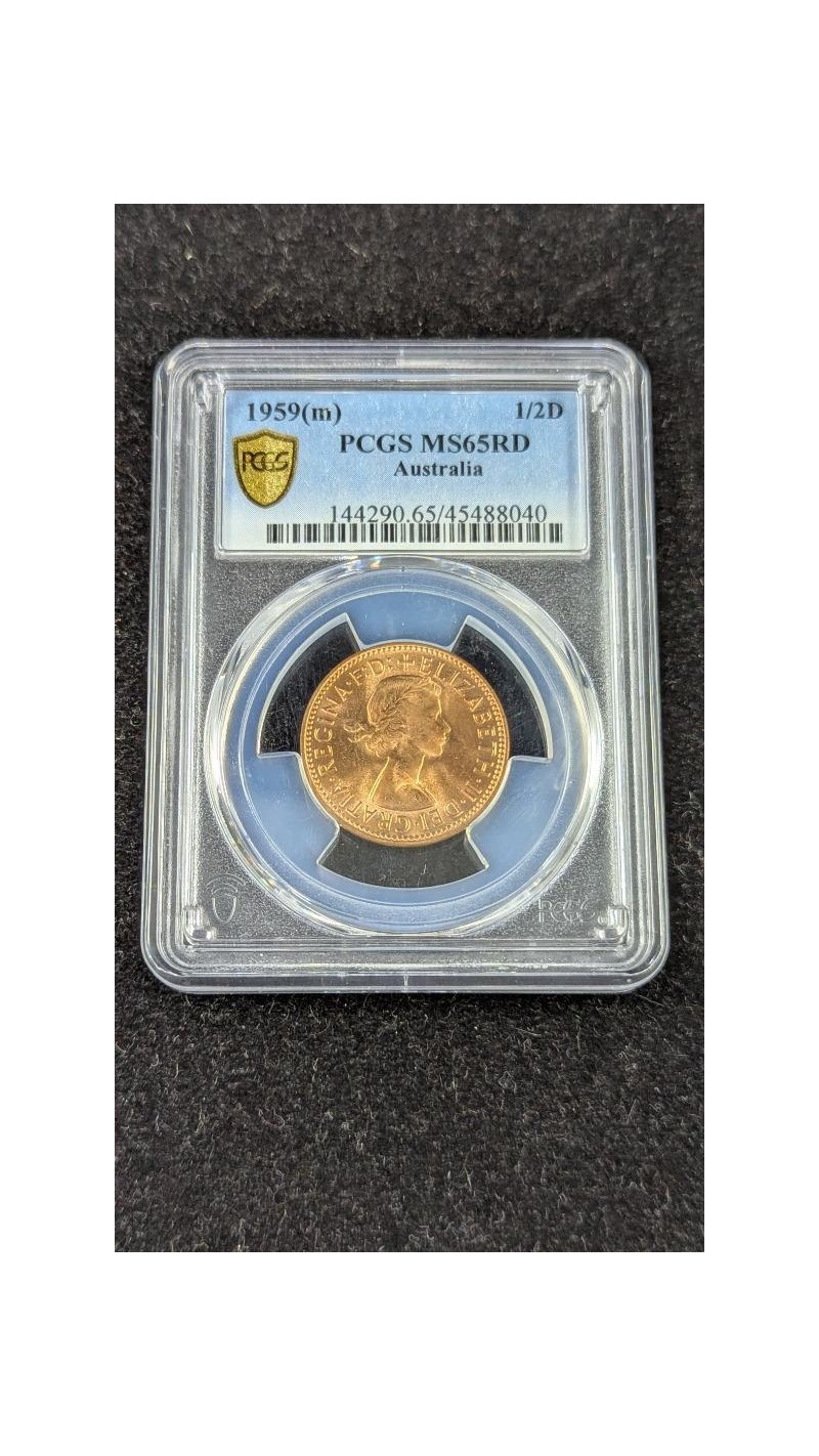 AUSTRALIAN 1959M PCGS GRADED MS65RD HALFPENNY COIN. Condition: Unc-Ch-Gem 151167+15