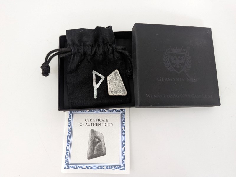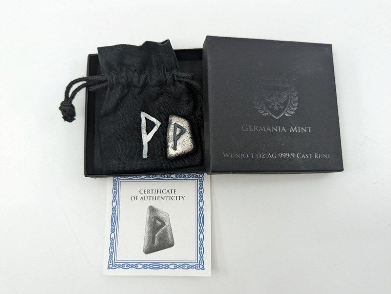 GERMANIA MINT VERY CERTIFIED 2023 RUNE 1OZ (ONE OUNCE) SILVER BAR GLOW IN THE DARKCondition: Proof996802+22