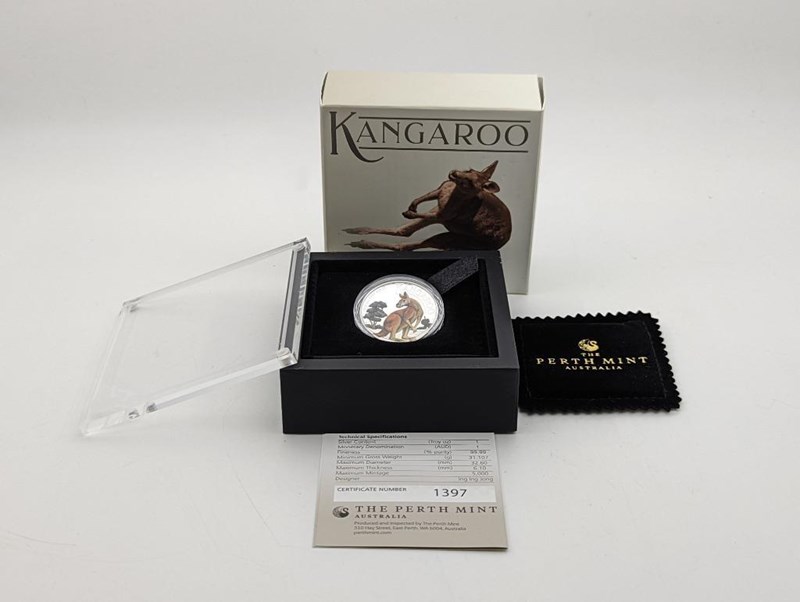 AUSTRALIAN THE PERTH MINT 2023 KANGAROO SERIES HIGH RELIEF DOME COLORED SILVER COINCondition: Proof996809+37