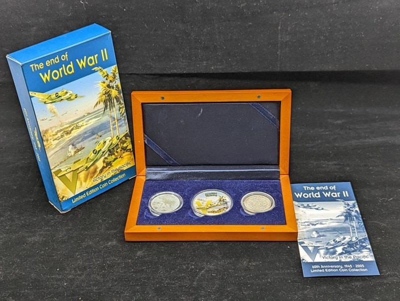 AUSTRALIAN CERTIFIED END OF THE WORLD WAR II THREE USA AND AUSTRALIAN SILVER COIN SET Condition: Proof 996850+1