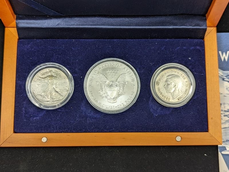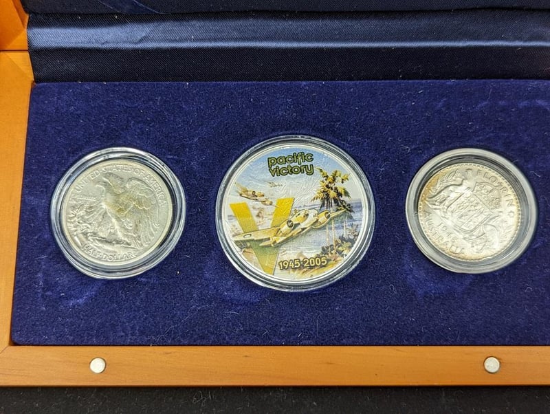 AUSTRALIAN CERTIFIED END OF THE WORLD WAR II THREE USA AND AUSTRALIAN SILVER COIN SET Condition: Proof 996850+1