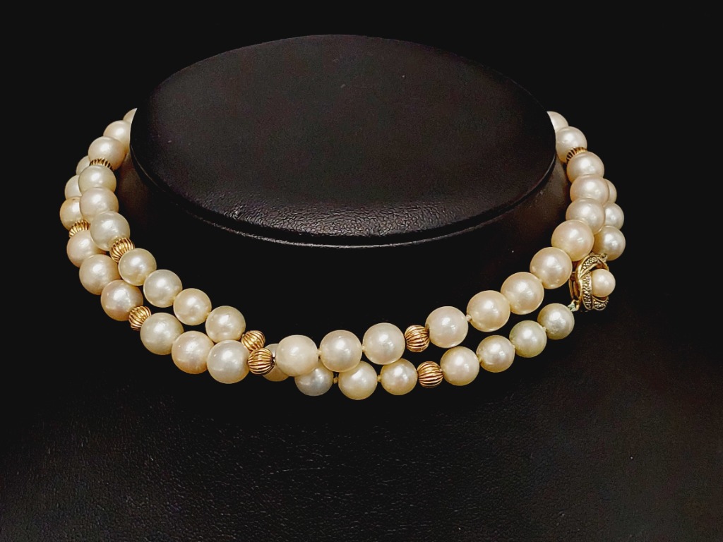 9CT YELLOW GOLD HANDMADE FRESHWATER PEARL STRAND NECKLACE