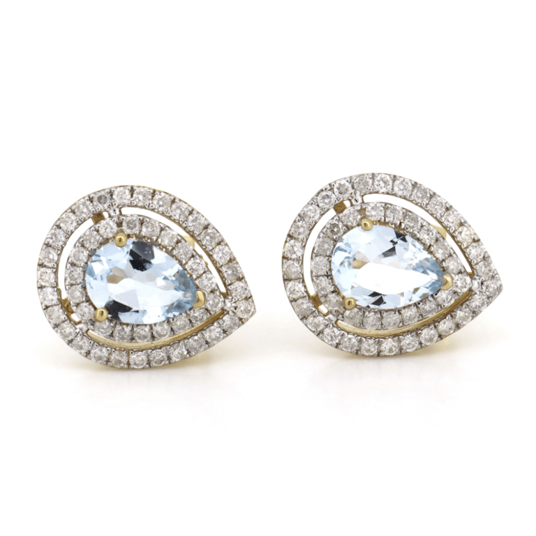 14K YELLOW GOLD, AQUAMARINE AND DIAMOND, DOUBLE HALO STUD EARRINGS. The Centres Feature, 2 Pear Cut, Light Greyish-Blue, Aquamarines (1.49Ct Tsw, Minor Eye Visible Inclusions), Prong Set. Surrounding The Centres In Double Halos Are, 94 Round Brilliant Cut, Diamonds (0.84Ct Tdw, J-K Colour, Si2-I2 Clarity), Micro-Claw Set In White Gold. The Earrings Have Post Backs With 14K Yellow Gold Butterfly Clasps. Valuations Provided by an Independent Third-Party Professional Not Directly Associated With Lloyds Auctions at AUD $$7,190.00 This valuation has been conducted by an independent third-party professional. The valuation amount is an assessment by the issuing valuer and does not reflect the auction value of the item. Any inquiries regarding the valuation should be directed to the issuing valuer (refer to contact details on the certificate), as Lloyds Auctions has no affiliation or influence over the valuation, the valuer, or the stated amount. Condition: Good - Refer Images 0 586122+48