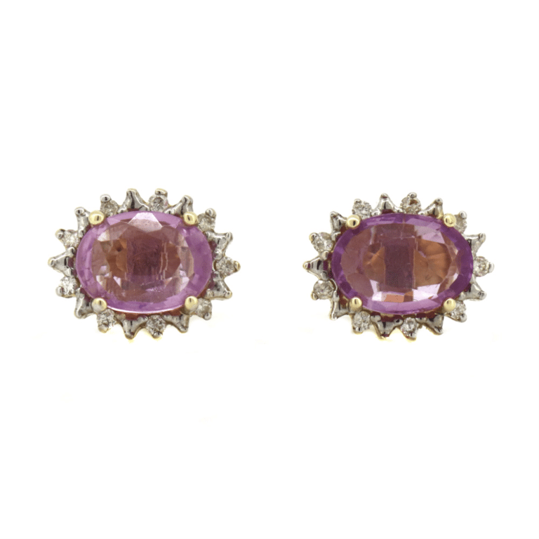 14K YELLOW GOLD, PINK SAPPHIRE AND DIAMOND, HALO STUD EARRINGS. The Centres Feature, 2 Oval Cut, Medium-Light Pink, Sapphires (1.66Ct Tsw, Eye Clean Clarity), 4 Claw Set. Surrounding The Centres In Halos Are, 20 Round Brilliant Cut, Diamonds (0.10Ct Tdw, H-I Colour, Si2-I2 Clarity), Claw Set In White Gold. The Earrings Have Post Backs, With 14K Yellow Gold Butterfly Clasps. Valuations Provided by an Independent Third-Party Professional Not Directly Associated With Lloyds Auctions at AUD $$5,850.00This valuation has been conducted by an independent third-party professional. The valuation amount is an assessment by the issuing valuer and does not reflect the auction value of the item. Any inquiries regarding the valuation should be directed to the issuing valuer (refer to contact details on the certificate), as Lloyds Auctions has no affiliation or influence over the valuation, the valuer, or the stated amount. Condition: Good - Refer Images 0586122+20