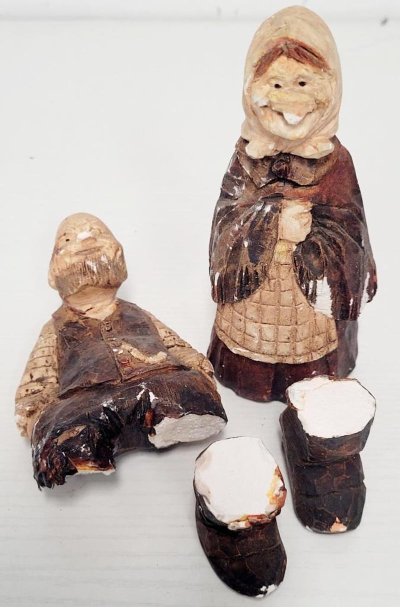 DANISH CHALKWARE - OLD MAN AND WOMANItem Size: Height: 15cm, Width: 7cmCondition : good, man sculpture broken at legs - Refer To Images