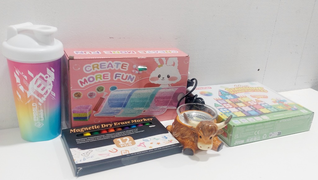 Magnetic Dry Erase Markers, Drink Bottle, 66 piece Starshine Magnetic Tiles & Create More Fun Kit.