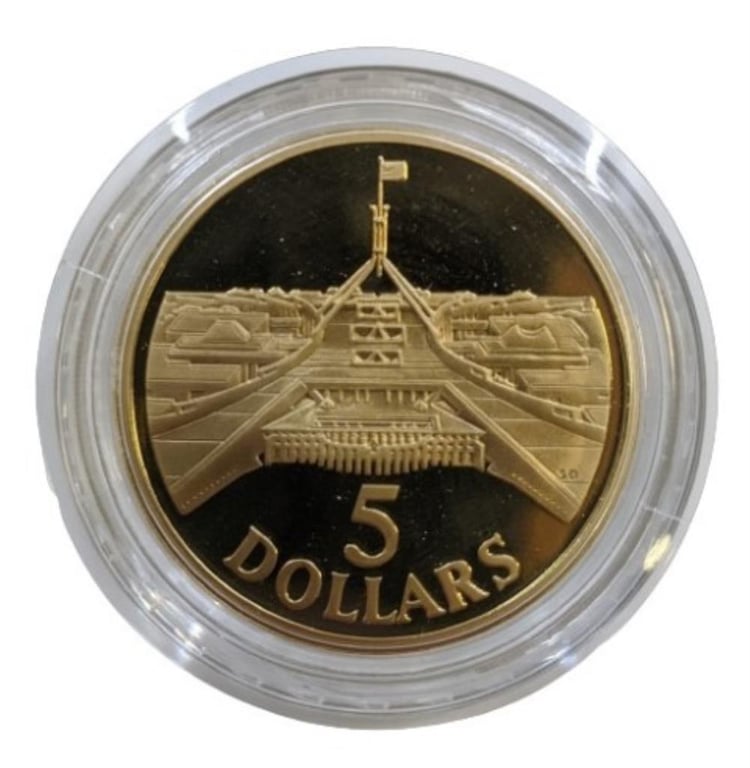 AUSTRALIAN 1988 5 DOLLAR PARLIAMENT HOUSE PROOF COIN IN ITS PRESENTATION CASE