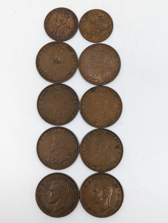 2 X 1930 AUSTRALIAN HALF PENNY Coins And 1931, 1932, 1933, 1934, 1935, 1936, 1938 & 1939 AUSTRALIAN PENNY CoinsCondition: Good - Refer To Images