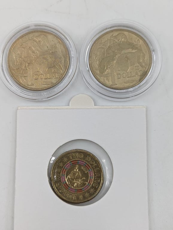 2 X 2019 AUSTRALIAN $1 MOB OF ROOS & 2019 AUSTRALIAN $2 MR SQUIGGLES COLOURED CARDED COINCondition: Good - Refer To Images