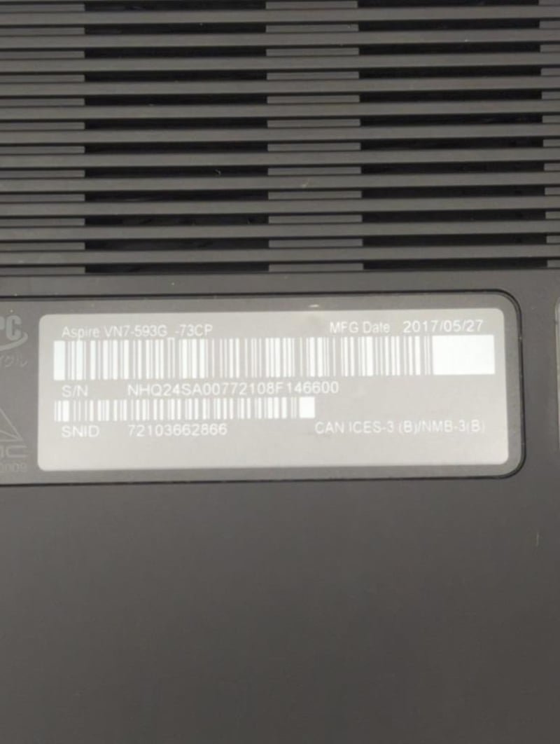 Acer Aspire V 15 Nitro, Black Edition. S/N : NHQ24SA00772108F146600