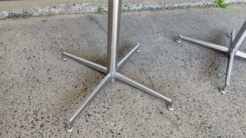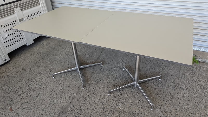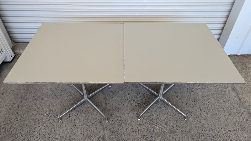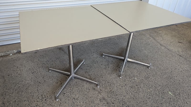 Restaurant Dining Tables, Table with Timber Top, Dimensions 74cm(H)×80cm(W), Quantity 2 Sold As Lot Note: Scratches Marks