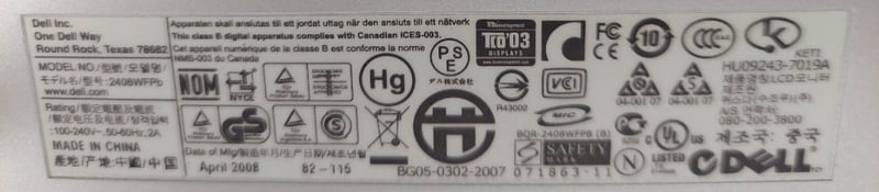 Dell UltraSharp 24 inch LCD monitor.Model: 2408WFPbSerial number: CN-0DP029-74261-84P-1URSDims: 37cm H, 56cm L 12cm W Note: item is untested, signs of wear.