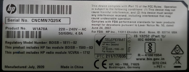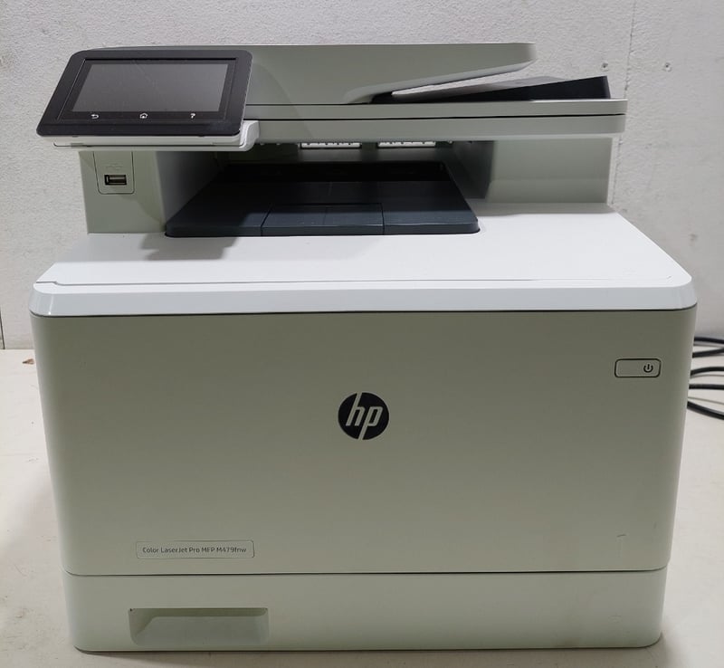 HP Color LaserJet Pro MFP M479fdw multifunction printer. Model: M479fnw Serial number: CNCMN7Q25K Dims: 40cm H, 41cm L, 45cm W Note: item is untested, signs of wear.